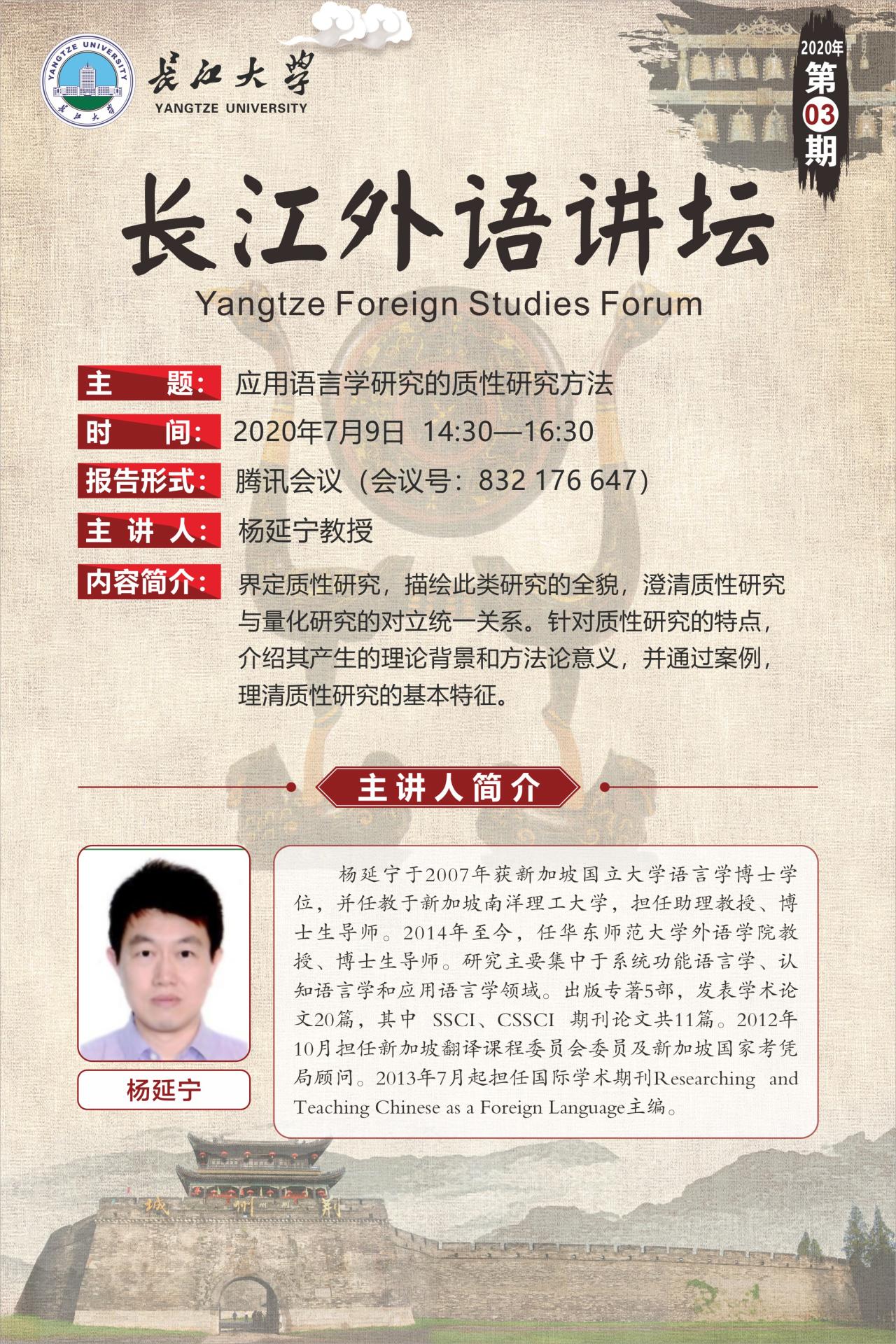 长江外语讲坛(第三讲):应用语言学研究的质性研究方法