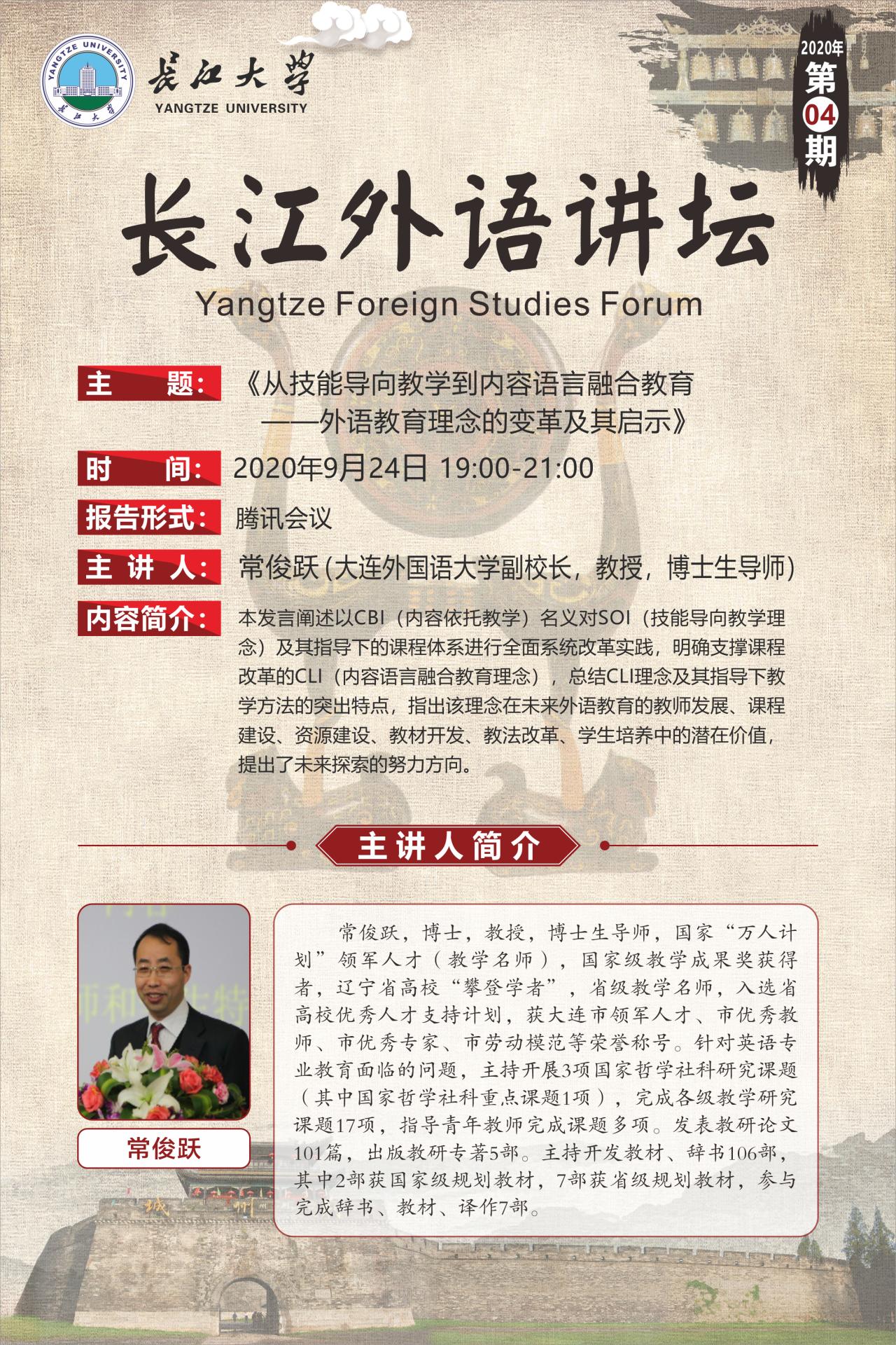 长江外语讲坛(第四讲):从技能导向教学到内容语言融合教育——外语教育理念的变革及其启示