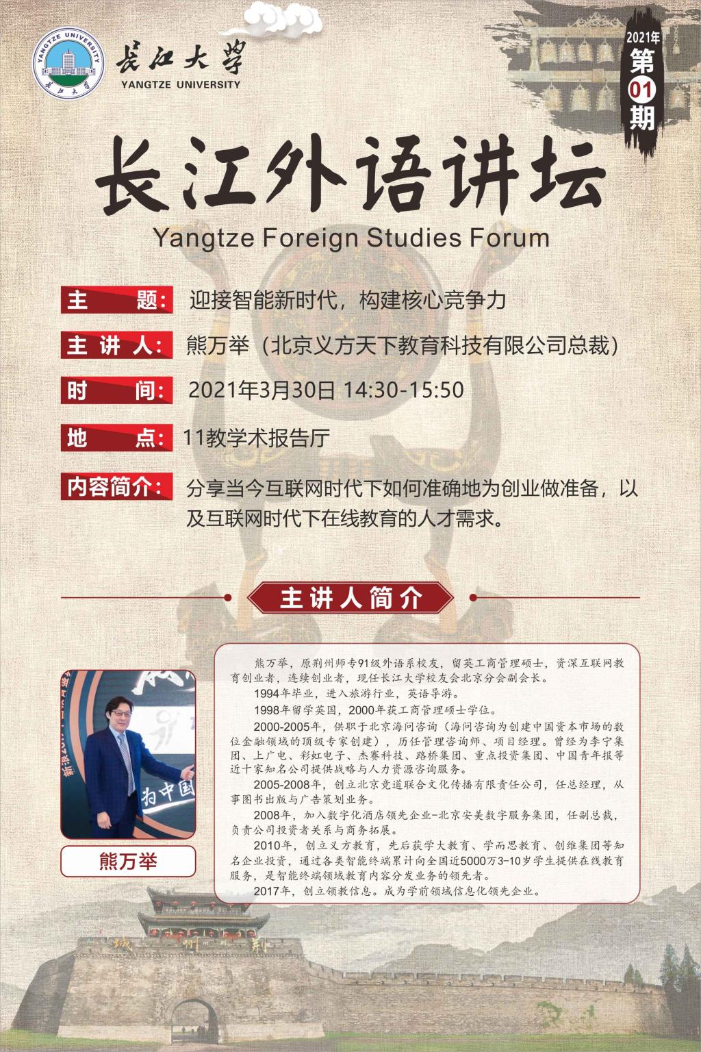 长江外语讲坛(第一讲):迎接智能新时代,构建核心竞争力