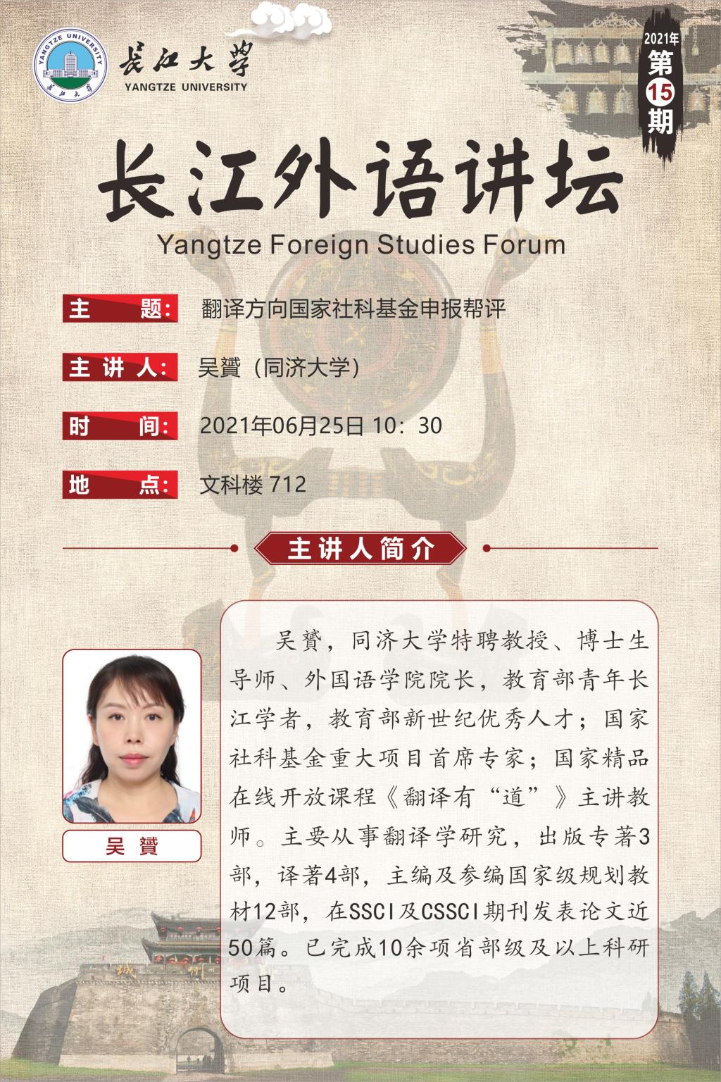 长江外语讲坛(2021年第十五讲):翻译方向国家社科基金申报帮评