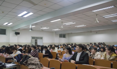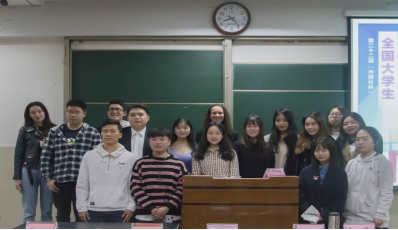 比赛开始前,彭院长上台致辞。他讲道:“用英语进行辩论是对头脑很大的挑战,所以我院始终如一地坚持举办这样的辩论赛。这种模式的辩论赛正是要考验同学们说服别人的沟通能力。