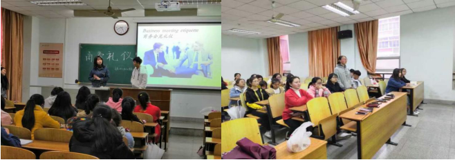 商英11803班于2019年3月21日第四大节在13-c-118在举办了本月班级特色活动。3月份是学雷锋月,首先在主持人的主持下,先由田瀚午同学向同学们介绍了雷锋精神。然后同学们齐声歌唱向雷锋学习的歌曲,同学们对雷锋精神有个更加深层次的认识。接下来,主持人介绍了礼仪的重要性及其作用。之后,我们进入了商务礼仪具体方面的学习。首先,商务座次礼仪。主持人吴琼同学为同学们详细讲解了不同情况下的座次礼仪,包括大型会议,商务会议喜宴,轿车座次。吴琼同学用生动的讲解使同学们对座次礼仪有了更深的了解。 学了不少知识,现在轻松一下,进入游戏环节。同学们在轻松有趣的活动中活跃了全场氛围。 接下来,进入商务会见礼仪的学习。首先,主讲人张雪钰同学邀请黄睿同学模拟了一种商务情景,以此进入会见礼仪的学习。这部分内容分为若干个要点,张雪钰同学针对各个要点进行了详尽的讲解。 最后,我们进入商务仪容仪表的学习。周赛同学首先讲解了西装穿着礼仪,然后分别举了男装,女装的例子,帮助同学们更加具体的了解西装着装礼仪。之后,又为同学们讲解了正确的坐姿。 本次活动,同学们踊跃发言,积极参与,从中学到了不少商务礼仪的知识。相信通过这次班级特色活动,同学们一定对本专业有了更深入的了解。