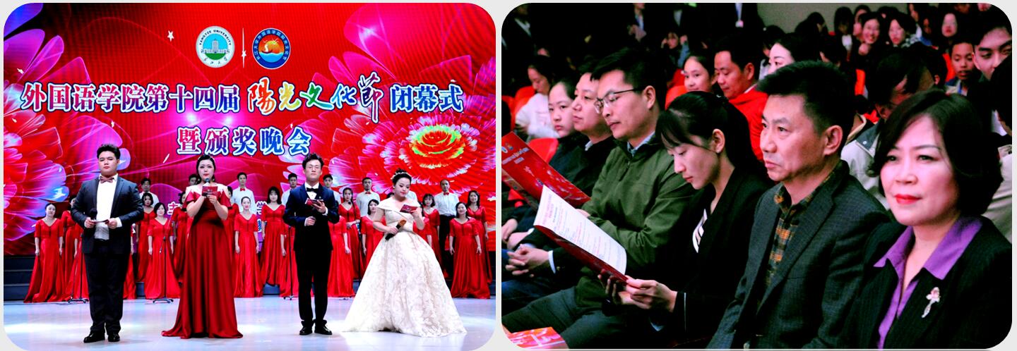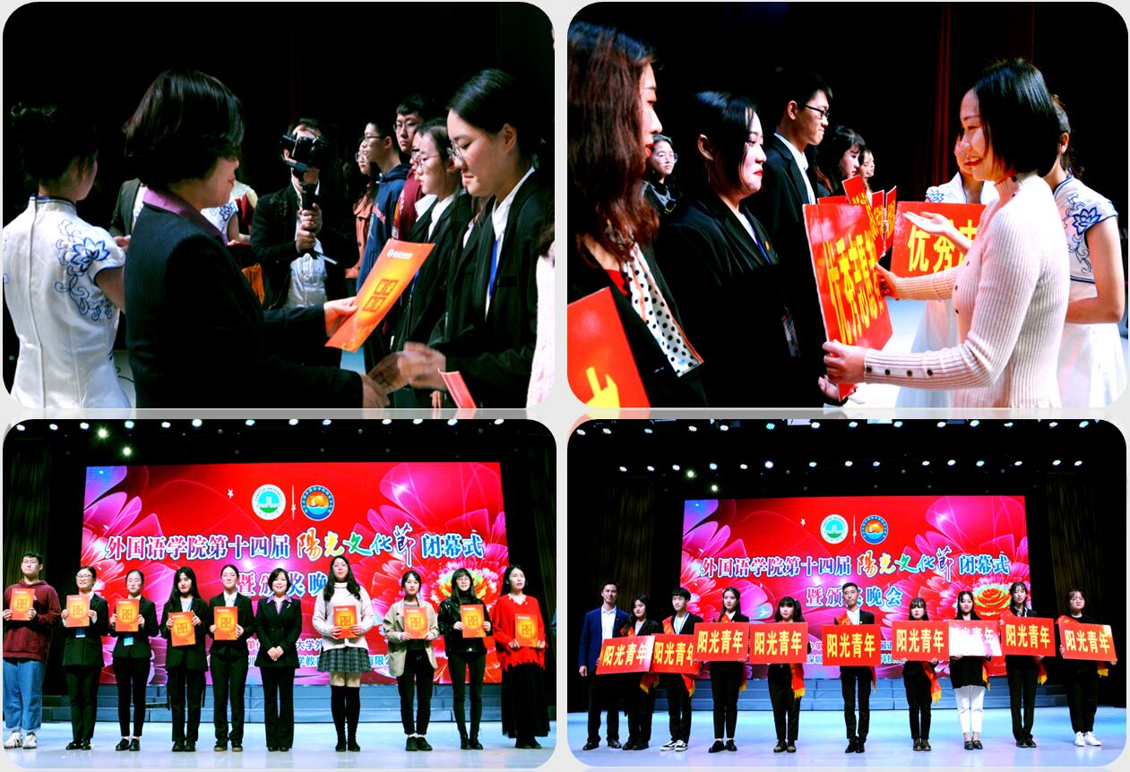 副院长彭沂宣读了第十四届“阳光文化节”的表彰文件;本届“阳光文化节”赞助单位——深圳市优教优学教育科技发展有限公司创始人元海斌在闭幕式上表达了对学院“阳光文化节”的美好祝愿;院团委第一副书记兼学生会主席李梓雯代表全院学生表达了在“阳光文化节”中的收获与体会。出席闭幕式暨颁奖晚会的领导和嘉宾分别为本年度获得校级“三好学生标兵”、“优秀学生干部”、“先进班级”,省级以上学科竞赛获奖学生,院级“优秀志愿者”、“阳光青年”进行了颁奖,激励他们再接再厉,开拓进取。