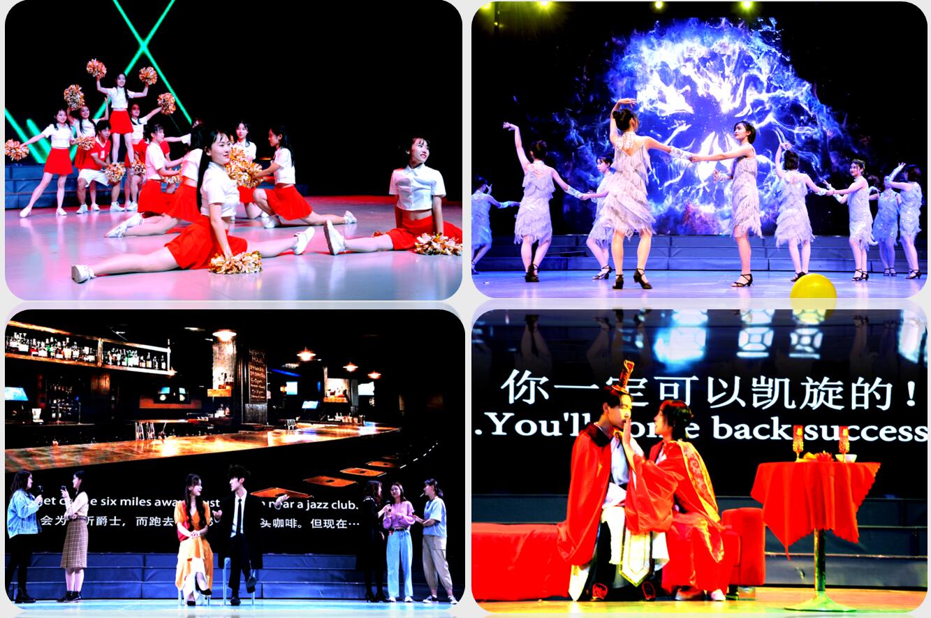 第二篇章“时代奔腾,扬鞭奋蹄紧追,才志壮行正当时”,通过研究生和本科生中英文朗诵古典诗歌《知否知否》,让观众深深陷入了美妙的视听盛宴之中;英文舞台剧《La La Land》(《爱乐之城》),用纯正的美音,律动的歌舞,浪漫的背景,展现了外院学子的专业功底和文艺才华;动感的留学生舞蹈《Playing with Fire》搭建起中外文化交流的桥梁;由院团委书记杜岳青老师和4名学生共同演唱的《年少的光》,让人们沉浸在青春年华之中,启迪广大学子走出彷徨走向阳光;学院拉丁舞队更是用摇曳多变的舞蹈《破·立》,汇报了拉丁舞队成立一年多来的成果。