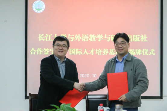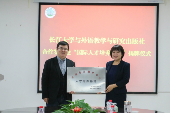 (通讯员:车桥)10月26日上午,长江大学与外语教学与研究出版社(简称外研社)在文科大楼712会议室举行国际人才培养基地签约授牌仪式,双方将在国际人才培养与输送方面进行更深层合作。开云app登录入口院长谈宏慧教授、副院长彭沂副教授、教务处副处长郑健、商务英语系主任张玉宏副教授、日语系副教授邓高、国才考试指导老师陈双玉副教授、外研社高等集群营销中心湖北市场经理柳泽宇、华中信息中心市场经理邓洪、北京外国语大学中国外语测评中心王璐艳等代表出席签约揭牌仪式,仪式由开云app登录入口党委书记危煜祥主持。