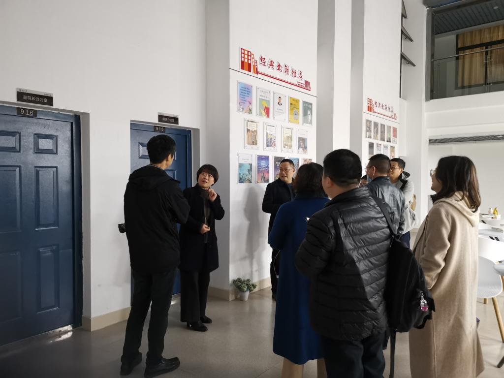 座谈会后,院长谈宏慧带领大家参观了“湖北省高等学校英语语言学习示范中心”、“长江大学翻译研究中心”以及“外院阳光书吧”。
