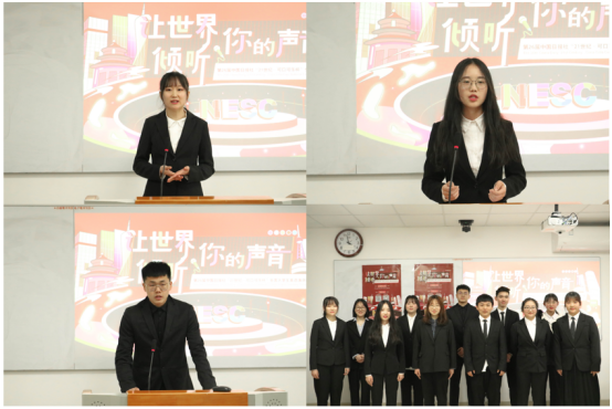 决赛共包含定题演讲、即兴演讲以及评委提问三个环节。定题演讲主题“Protecting the Blue Planet”,选手们紧扣主题,尽显风采,以流利的口语表达、昂扬的精神面貌表达了自己对世界环境问题的关切,他们围绕人与自然的关系,从经济、文化、哲学等各个角度深度剖析了保护地球的重要性,展现了大学生应有的思维认知高度,获得评委们的一致好评;即兴演讲环节,选手们面对随机抽取的演讲话题,在限定时间里认真思考、组织语言、流畅表达,让现场观众感受到了语言的魅力随后评委老师们根据选手演讲内容进行针对性提问,选手进行1分钟作答,选手们睿智的思考与出色的解答赢得观众阵阵掌声。