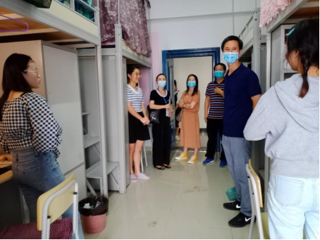 (通讯员:龙晨/文 潘怡西/摄)9月5日下午,为了解2021级新生入住情况和生活需求,让学生们尽快融入到学院的大家庭之中,院领导到研究生新生寝室进行了走访。外语学院党委书记危煜祥,分管科研工作副院长谢家成,分管研究生副院长付小秋,研究生辅导员伍世英一行去人才公寓看望21级新生。