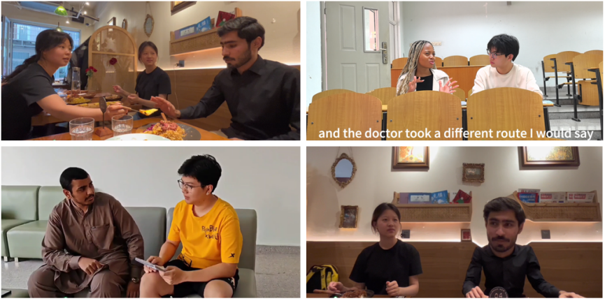 “跨文化交际”课程通过师生共建案例库的方式,发挥学生主体性,拓展教学内容。在今天的“跨文化交际”课程中,9组同学通过精心制作的视频展示,生动呈现了不同文化背景下的交际冲突与融合。