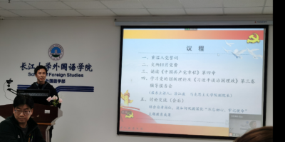 最后,危煜祥带领大家一起学习了《习近平总书记教育重要论述讲义》第一讲“教育事业发展的定海神针——坚持党对教育事业的全面领导”,传达了习近平总书记在中央党校(国家行政学院)中青年干部培训班开班式、纪念中国人民志愿军抗美援朝出国作战70周年大会、深圳经济特区建立40周年大会等重要会议上的讲话精神,以及在第七个国家扶贫日到来之际关于脱贫攻坚工作的重要指示。会上还学习了《中国共产党第十九届中央委员会第五次全体会议公报》、中共中央《关于巩固深化“不忘初心、牢记使命”主题教育成果的意见》、中共荆州市委《关于在全市开展“党课开讲啦”的通知》等文件精神。