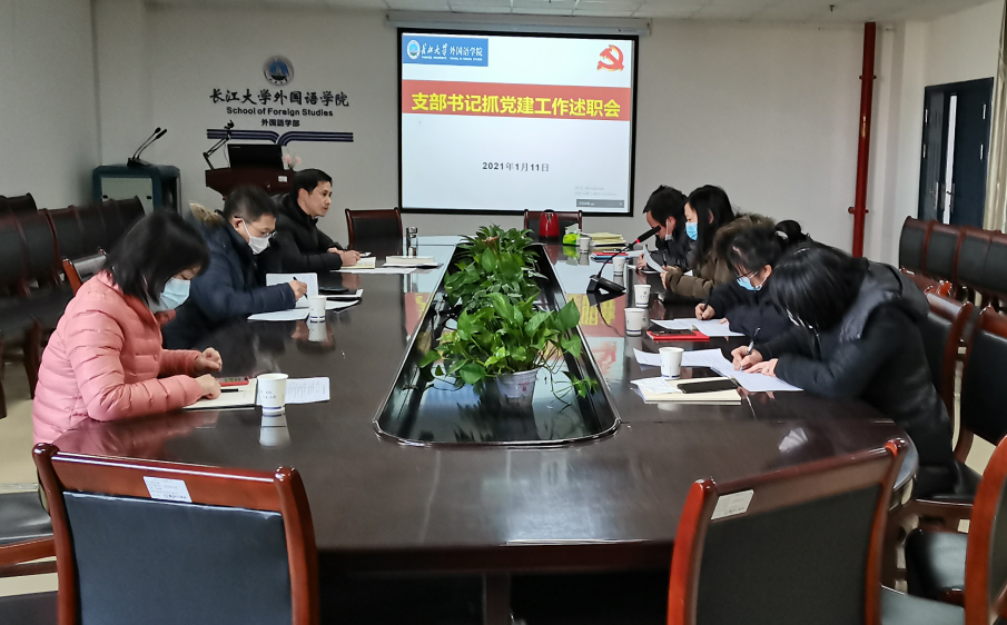 1月11日下午,学院在文科楼712会议室召开党支部书记抓党建工作述职会,并开展学院党委理论学习中心组集中学习。会议由院党委书记危煜祥主持,院长谈宏慧,副院长谢家成、彭沂,党委副书记魏红洁,党委委员、公外一党支部书记马春花,党委委员、教工综合党支部书记段友国,研究生党支部书记许泽琼,本科生党支部书记童超参加了线下会议,武汉校区党支部副书记郭蕾在线上参加了会议。