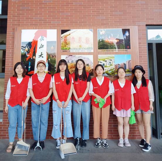 从她们身上,看到了新一代青年的满满活力,展现的是我大外院的志愿服务精神:“奉献、友爱、互助、进步”。直至下午五点二十,整栋文科大楼清理完毕,志愿者们汇合到七楼外院学生工作办公室并合影留念,我院第一次“千人励志爱心行动”圆满结束。