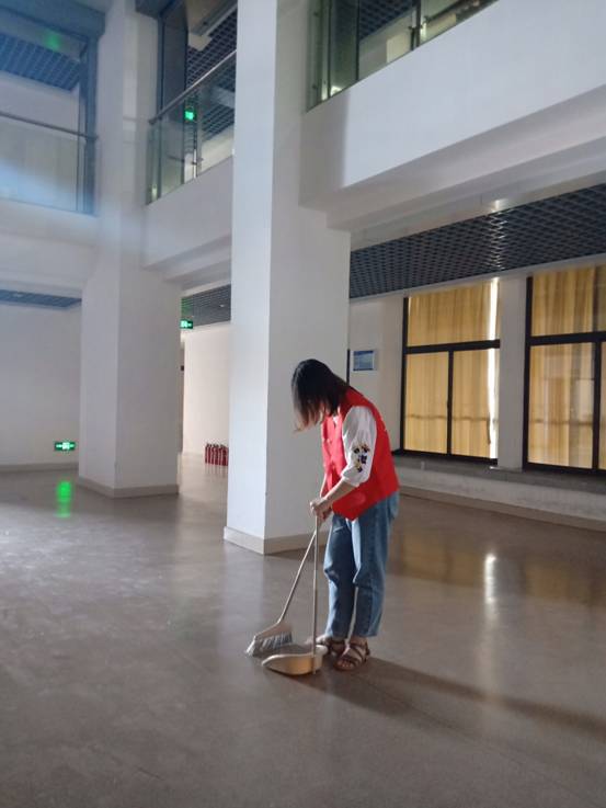 清洁,听似简单的动作,一整栋文科大楼,工程量不小,而我们的志愿者并没有觉得无聊,也没有觉得累,反而很积极,很有干劲,整个过程没有任何停歇,志愿者们互相协作,直至清洁完整栋文科大楼,给每一位青年树立了良好的榜样。