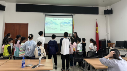 (通讯员 卢俊炜)4月21日下午,“绘声绘色”英语绘本故事会活动在荆州市图书馆一楼多媒体教室如期开展,并通过抖音平台“荆小图”账号实现全程线上直播。这是我院“阳光号列车”研究生志愿队参与的第54期“绘声绘色”活动。我院2023级学科英语专业研究生吴丽婷同学与雷丹丹同学分别作为主讲师和助教参与此次活动。