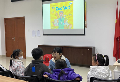 (通讯员 卢俊炜)12月3日下午,“绘声绘色”英语绘本故事会活动在荆州市图书馆一楼多媒体教室如期开展,并通过抖音平台“荆小图”账号实现全程线上直播。这是我院“阳光号列车”研究生志愿队参与的第45期“绘声绘色”活动。我院2023级学科英语专业研究生何禹典同学与学科英语专业研究生贺静同学,分别作为主讲师和助教参与了此次活动。