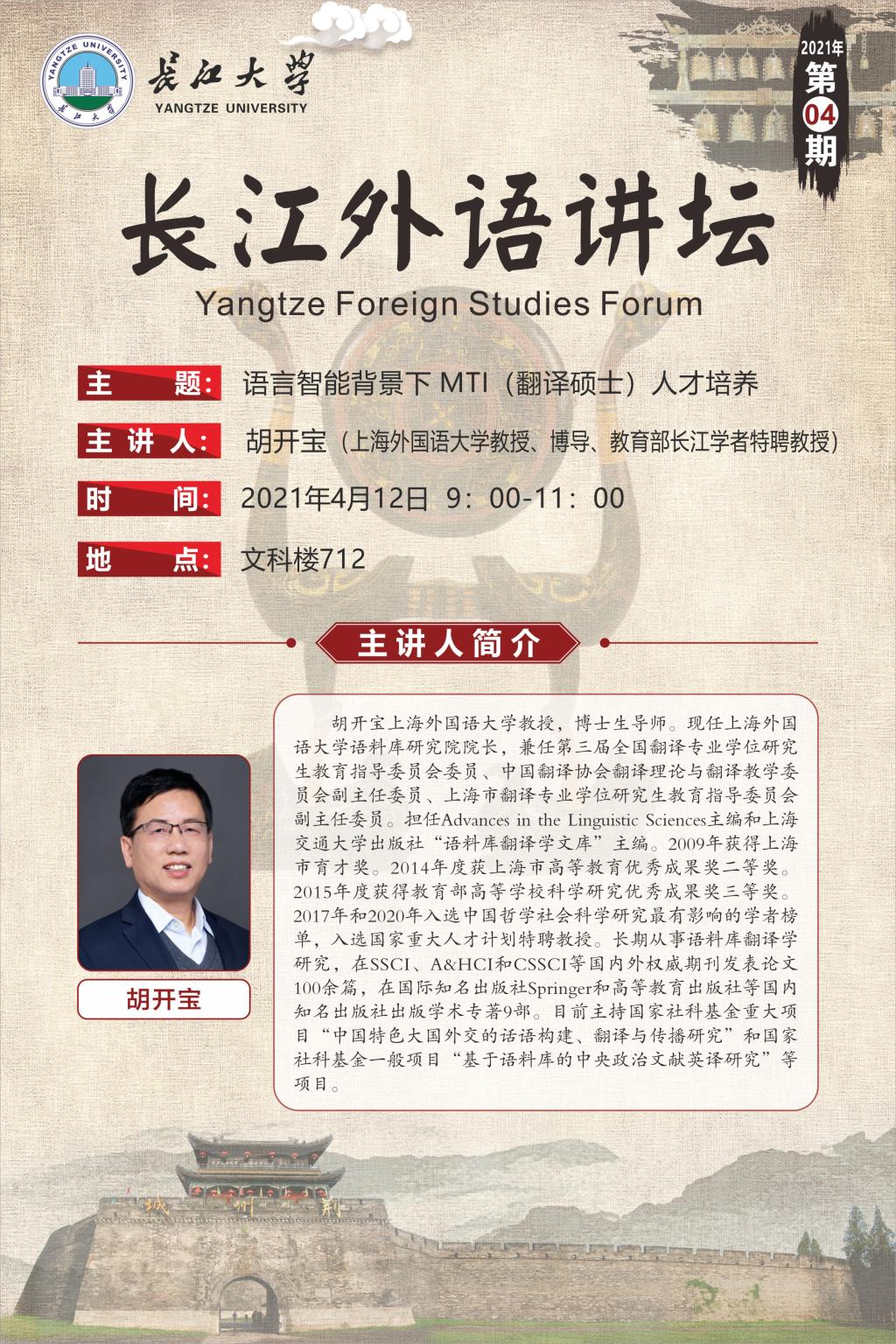长江外语讲坛(2021年第四讲):语言智能背景下 MTI(翻译硕士)人才培养