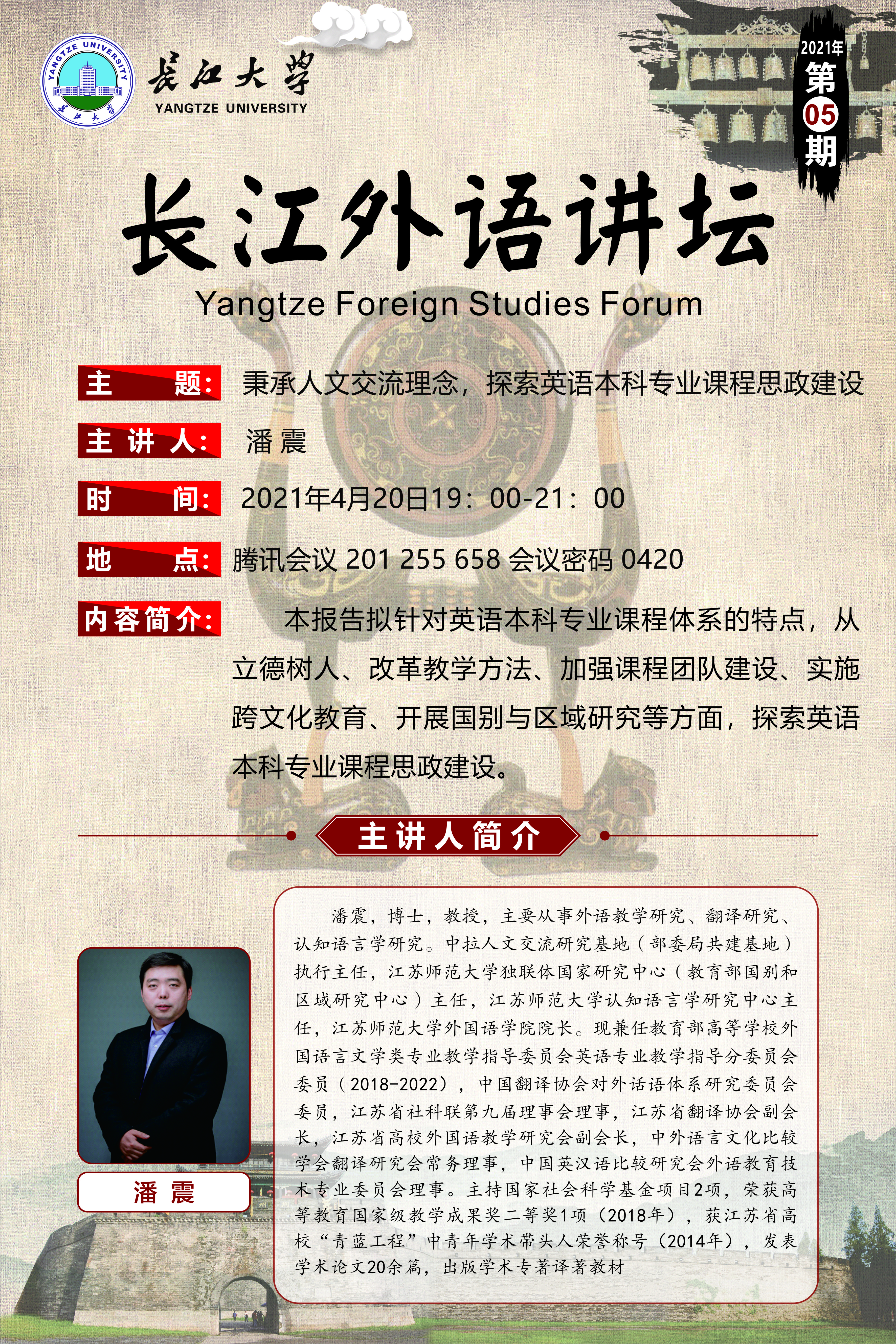 长江外语讲坛(2021年第五讲):秉承人文交流理念,探索英语本科专业课程思政建设