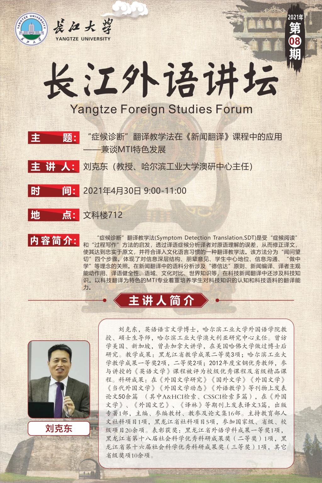 长江外语讲坛(2021年第八讲):“症候诊断”翻译教学法在《新闻翻译》课程中的应用——兼谈MTI特色发展