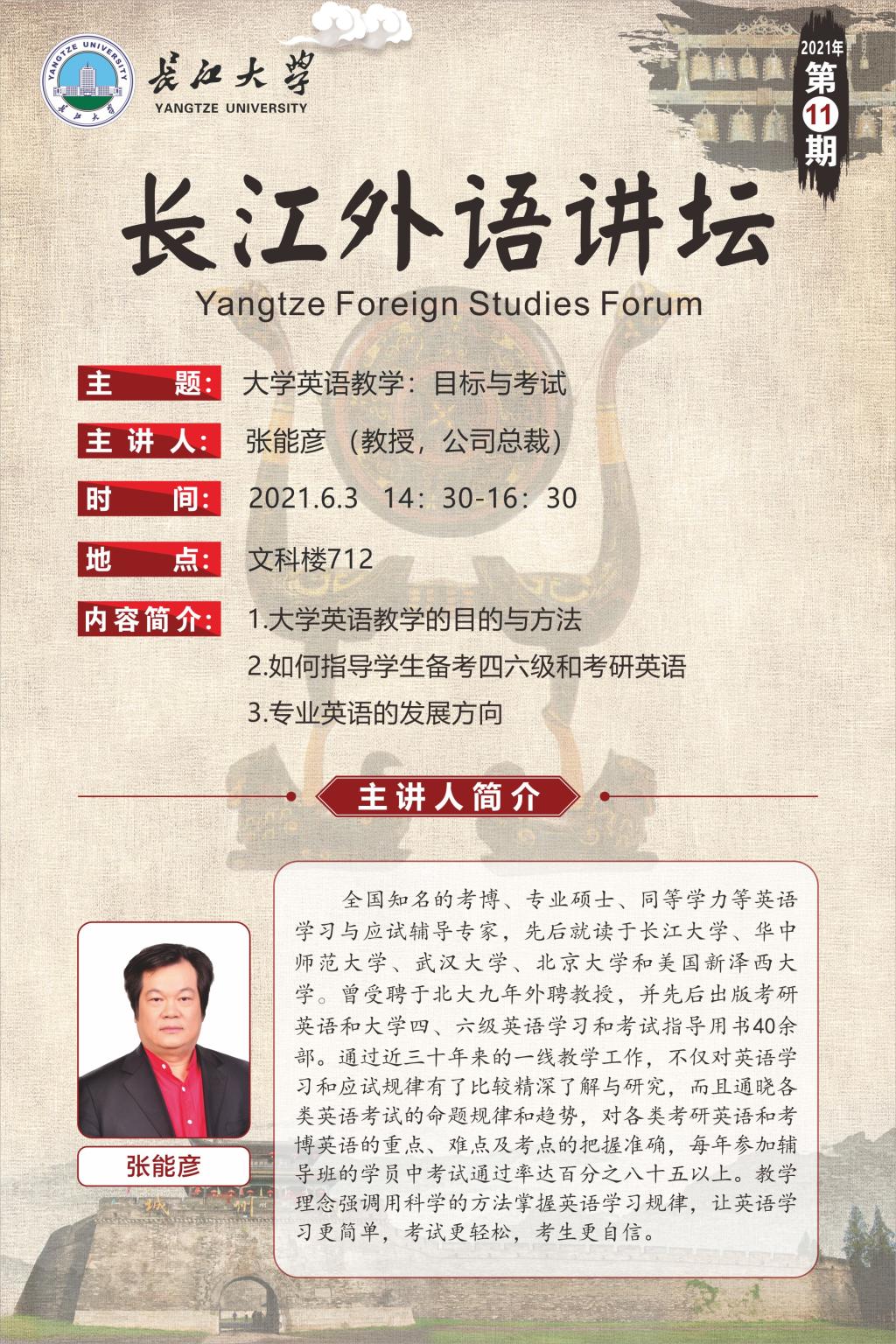 长江外语讲坛(2021年第十一讲):大学英语教学:目标与考试
