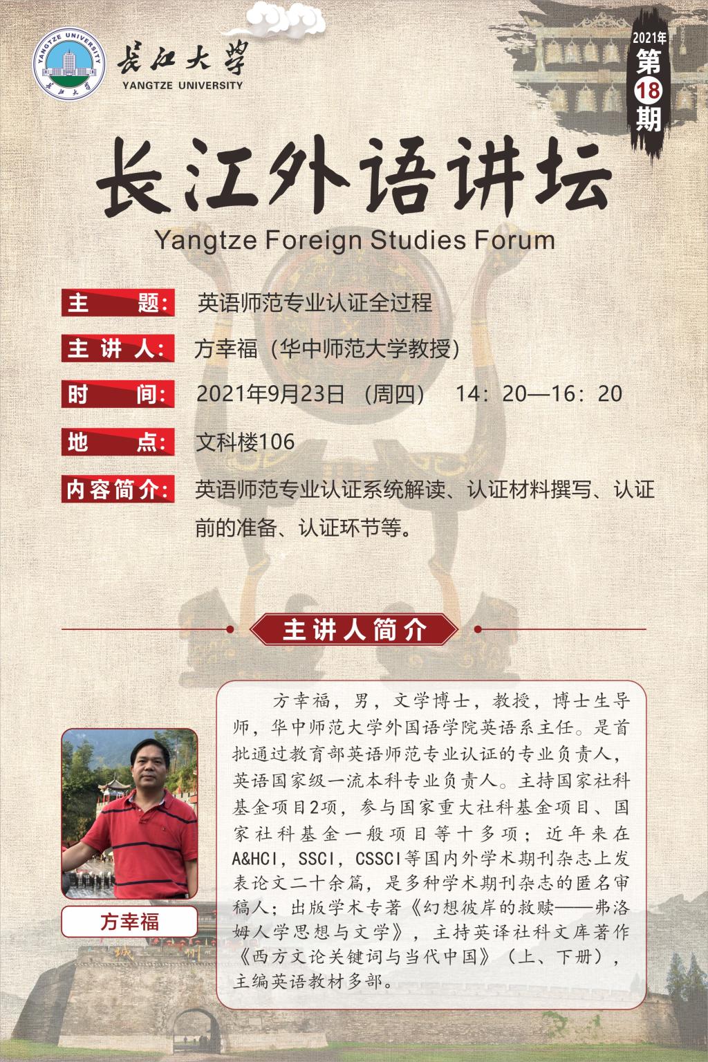 长江外语讲坛(2021年第十八讲)英语师范专业认证全过程