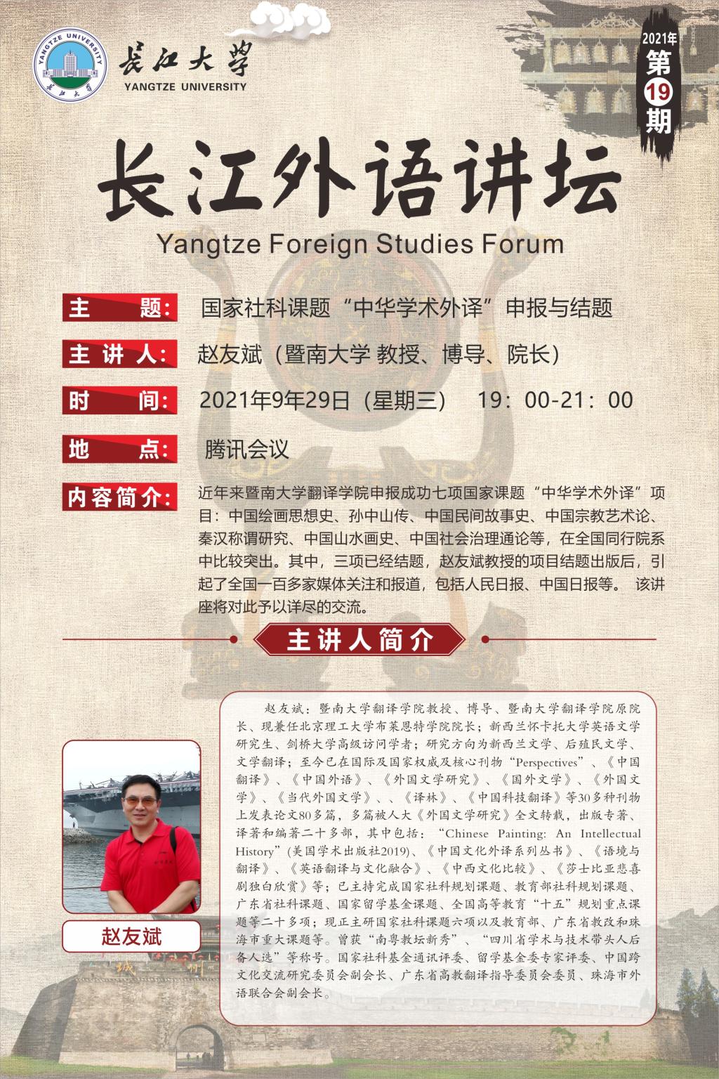 长江外语讲坛(2021年第十九讲)国家社科课题“中华学术外译”申报与结题