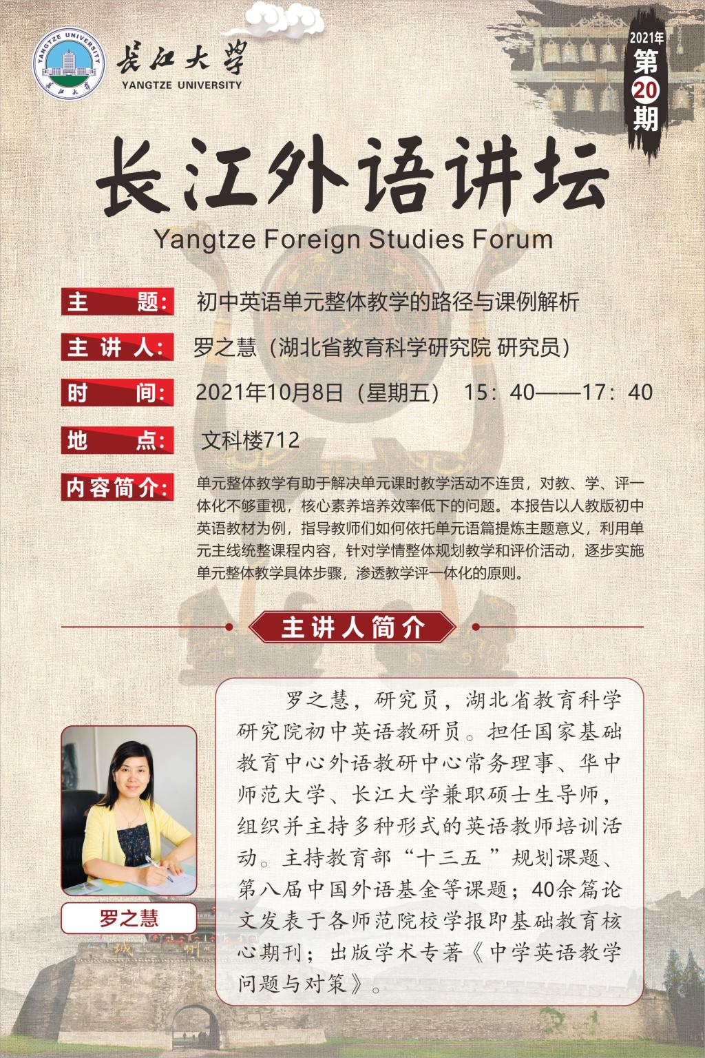 长江外语讲坛(2021年第二十讲)初中英语单元整体教学的路径与课例解析