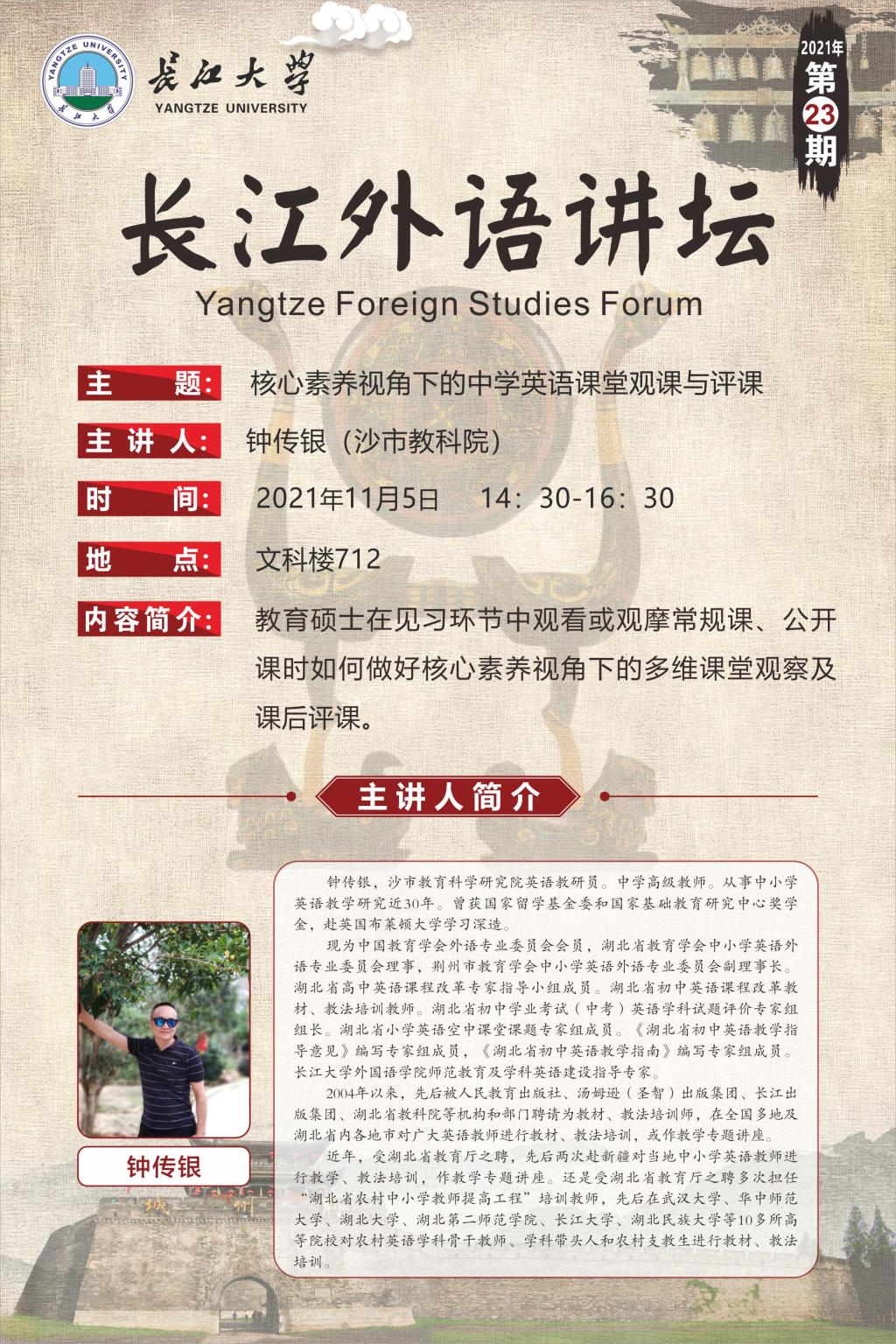 长江外语讲坛(2021年第二十三讲)核心素养视角下的中学英语课堂观课与评课