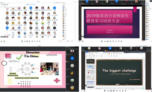 开云app登录入口于9月8日下午两点在线上举办了2019级实习动员大会及教师技能大赛实训,参与此次大会的有彭沂老师,王娟老师,李福兴老师,吴亚华老师,张婷老师,蒋娟老师,陈双玉老师,19级辅导员许泽琼老师以及日语及英语专业的19级师范生。